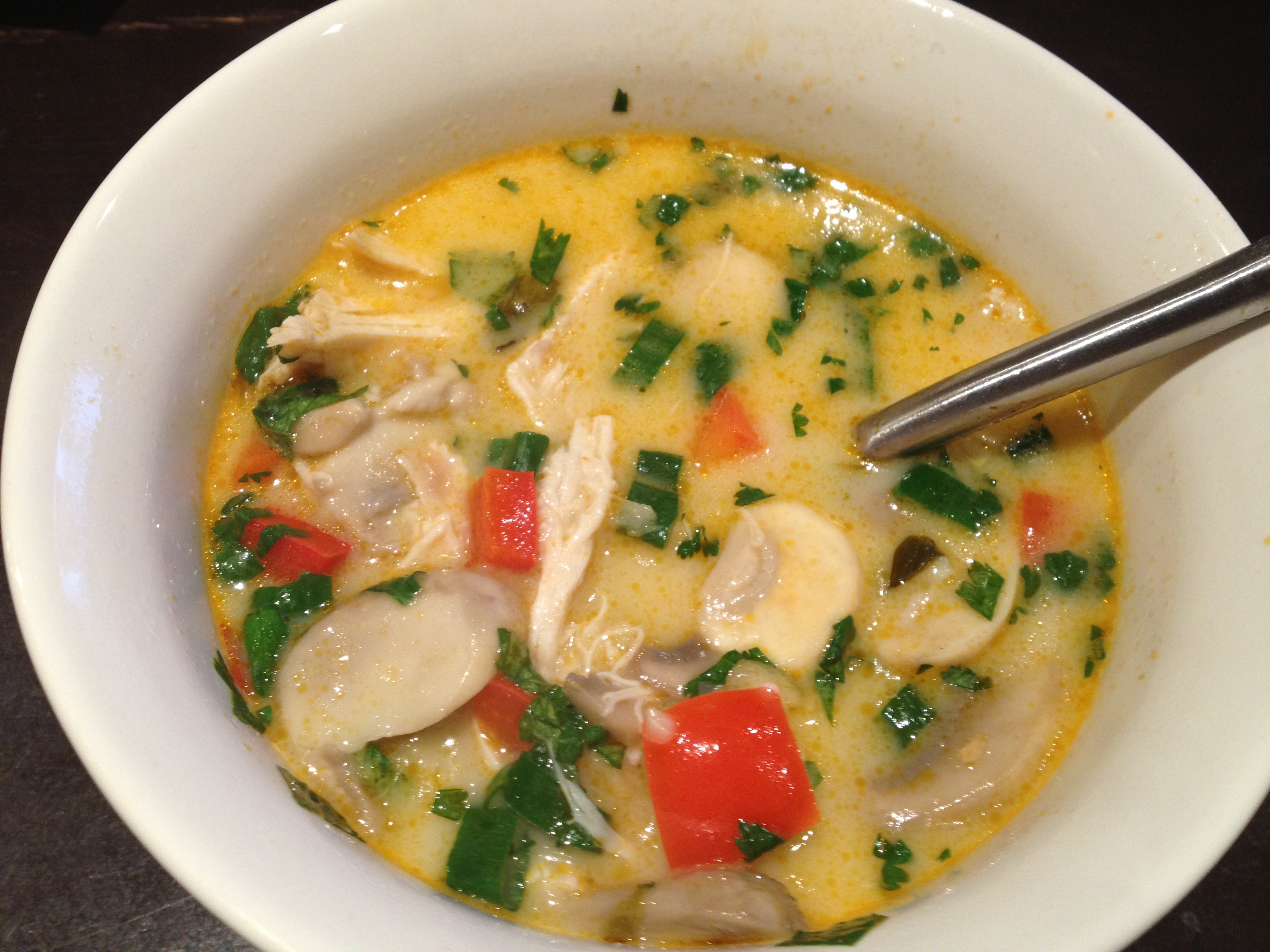 Homemade: Tom kha gai Posted bykarencookMarch 4, 2013March 7, 2013Posted inFoodTags:food Share this: Click to share on X (Opens in new window) X Click to share on Facebook (Opens in new window) Facebook Click to share on Pinterest (Opens in new window) Pinterest Click to email a link to a friend (Opens in new window) Email Like Loading... Related